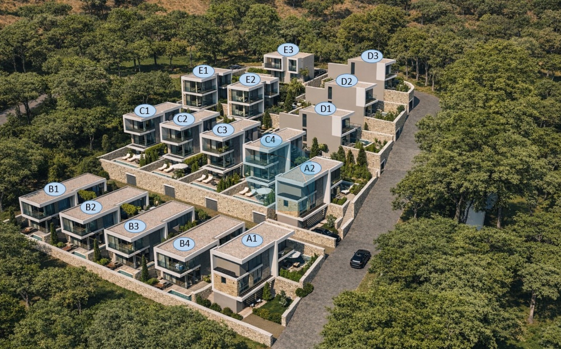 Doğanın huzuru ile modern mimarinin zarafetini buluşturan 16 özel villadan oluşan ayrıcalıklı yaşam projesi, sizlere benzersiz bir konfor deneyimi sunuyor. 4+1 VE 3+1 olarak tasarlanan villalarda 129- 155 m2 arası değişen büyüklüklerde, 2 katlı ve 3 katlı seçenekler bulunmakta olup, her yaşam stiline uygun geniş bir alternatif yelpazesi sizleri bekliyor. Projenin bazı villaları, manzarasıyla büyüleyen eşsiz deniz görüntüsüne sahiptir. Günün her anında değişen renkleriyle deniz, evinizin bir parçası hâline gelirken; geniş cam cepheler ve modern çizgiler manzaranın evin içine doğal bir şekilde akmasını sağlıyor. Her villa, özel bahçe alanı, geniş terasları ve havuzuyla size ve sevdiklerinize tamamen kişisel bir yaşam alanı sunar. Teraslardan havuza uzanan ferah mimari, doğa ile bütünleşen taş dokular ve modern özelliklerle donatılmış iç mekânlar, konut sahiplerine yılın her günü tatil konforunda bir yaşam sağlar.