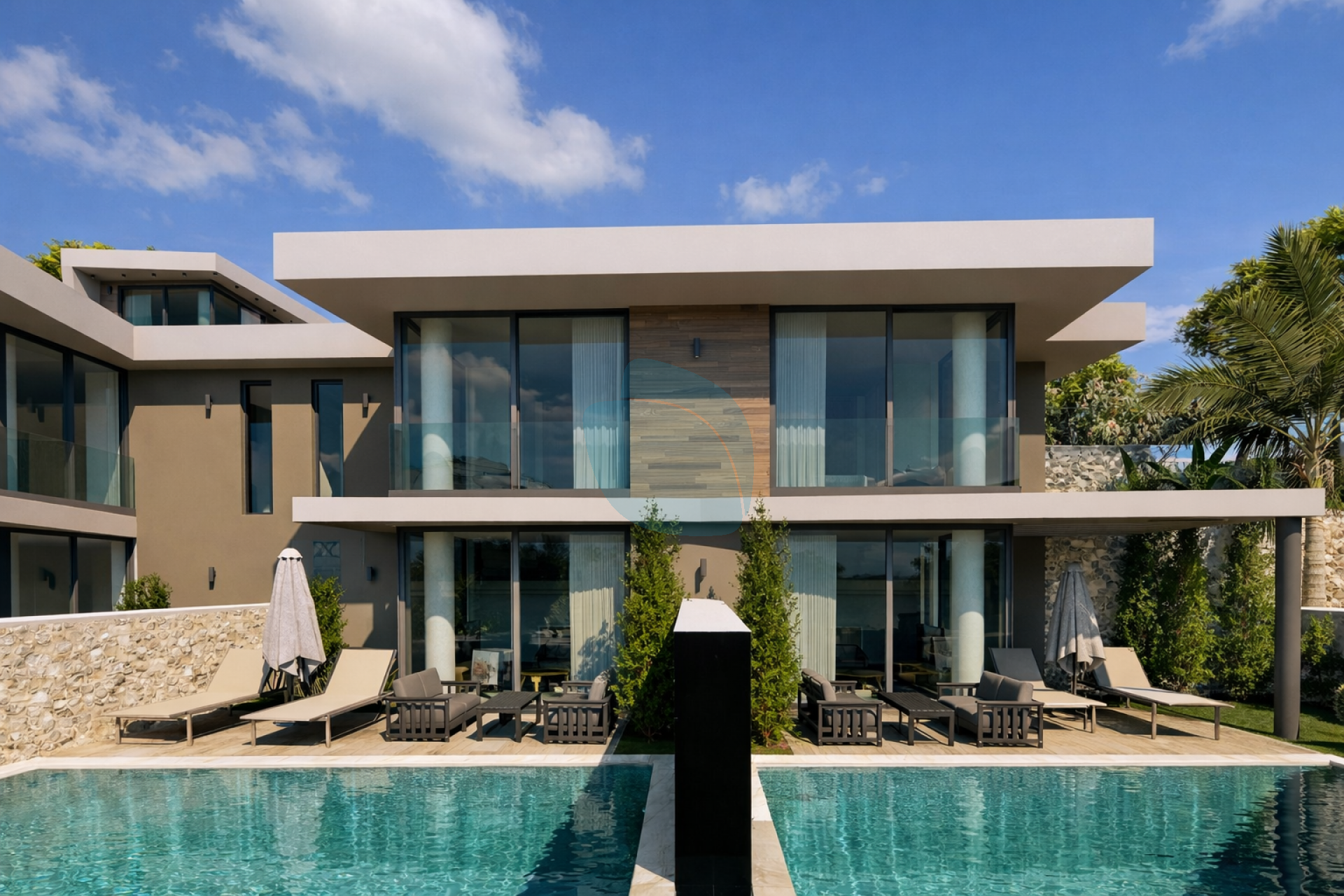BaRiviera'nın Dördüz Villaları, ev sahiplerine açık plan yaşam alanı, özel havuz ve güzelce düzenlenmiş açık alanlar sunmaktadır. Bu yeni inşa edilmiş villalar, çiftler veya küçük aileler için ideal, ev sıcaklığını aratmayan bir ortam yaratan tek bir çift kişilik yatak odasına sahiptir.