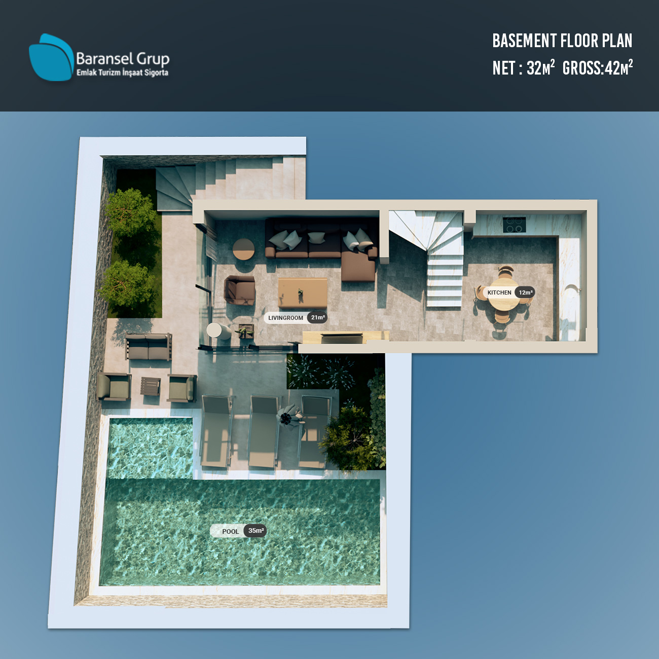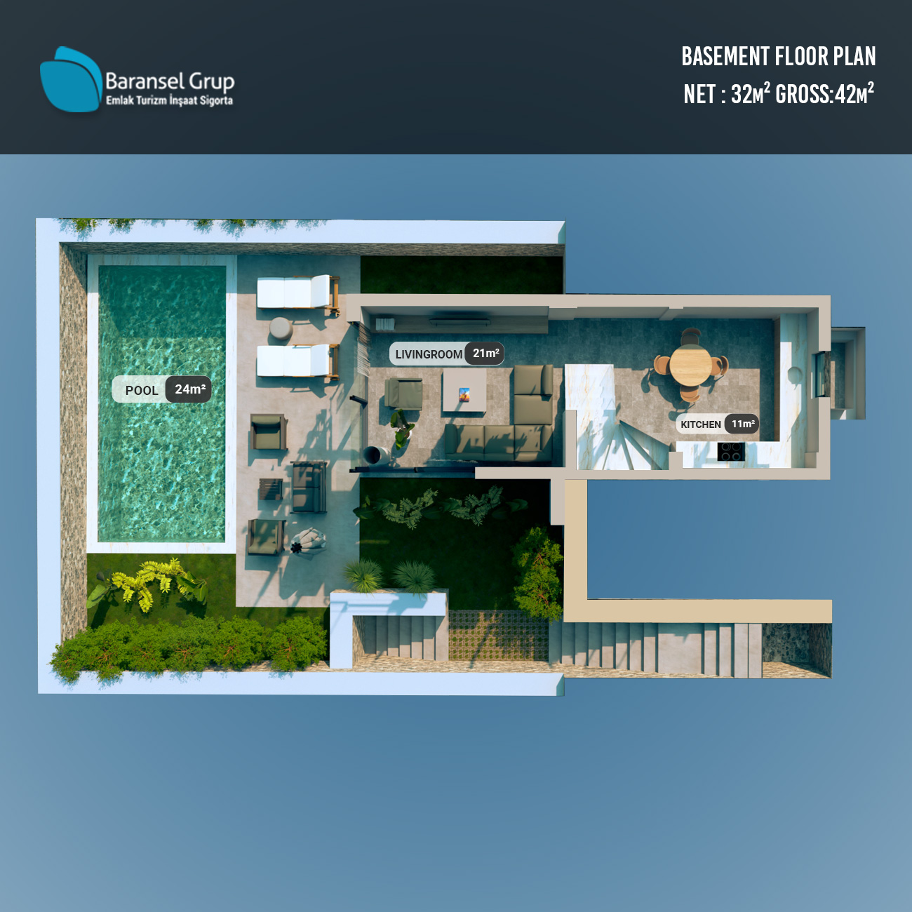 At Baransel Group, we take pride in creating practical yet contemporary designs, enabling homeowners to enjoy fully functional villas without compromising on aesthetics. Our team of experienced interior designers carefully considers every detail — from kitchen units and shelving to in-home storage spaces — ensuring that each villa is thoughtfully planned to maximise both comfort and style.