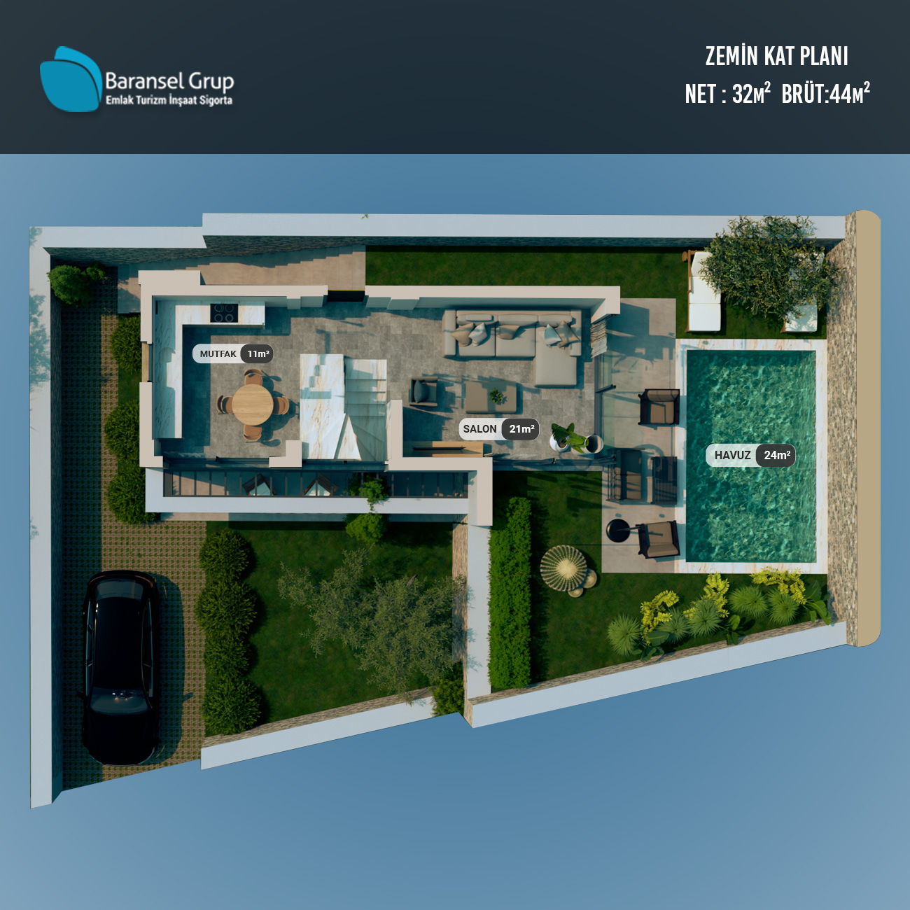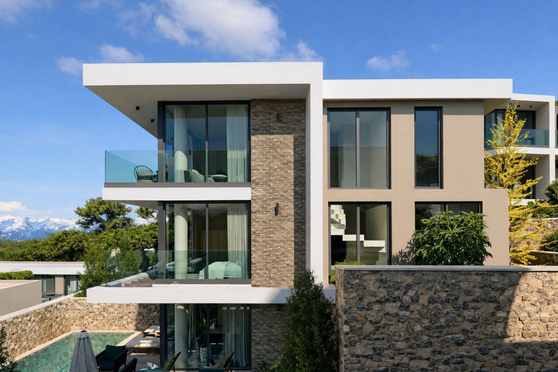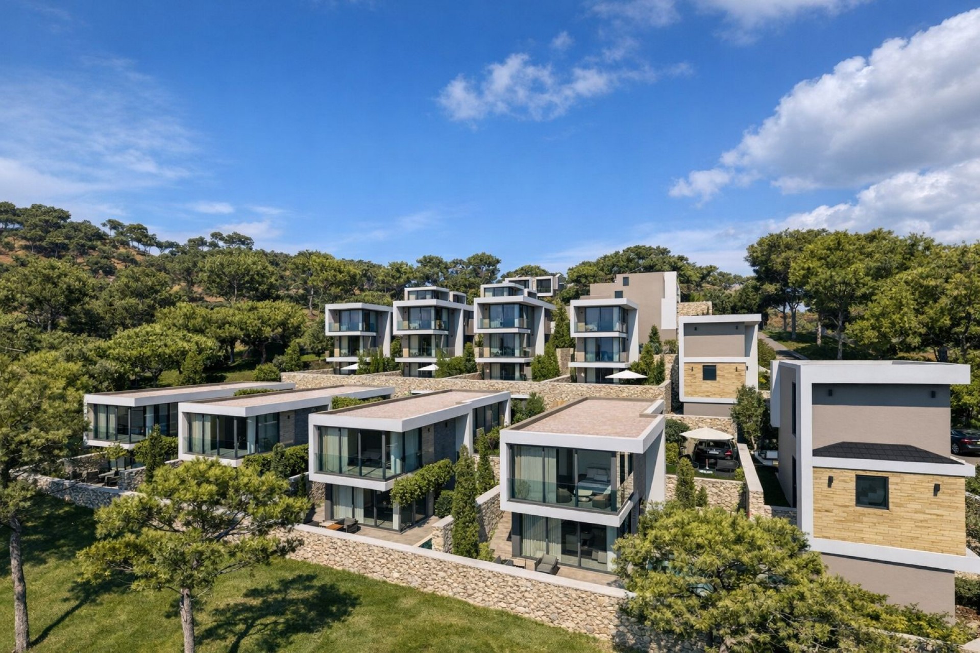 Doğanın huzuru ile modern mimarinin zarafetini buluşturan 16 özel villadan oluşan ayrıcalıklı yaşam projesi, sizlere benzersiz bir konfor deneyimi sunuyor. 4+1 VE 3+1 olarak tasarlanan villalarda 129- 155 m2 arası değişen büyüklüklerde, 2 katlı ve 3 katlı seçenekler bulunmakta olup, her yaşam stiline uygun geniş bir alternatif yelpazesi sizleri bekliyor. Projenin bazı villaları, manzarasıyla büyüleyen eşsiz deniz görüntüsüne sahiptir. Günün her anında değişen renkleriyle deniz, evinizin bir parçası hâline gelirken; geniş cam cepheler ve modern çizgiler manzaranın evin içine doğal bir şekilde akmasını sağlıyor. Her villa, özel bahçe alanı, geniş terasları ve havuzuyla size ve sevdiklerinize tamamen kişisel bir yaşam alanı sunar. Teraslardan havuza uzanan ferah mimari, doğa ile bütünleşen taş dokular ve modern özelliklerle donatılmış iç mekânlar, konut sahiplerine yılın her günü tatil konforunda bir yaşam sağlar.