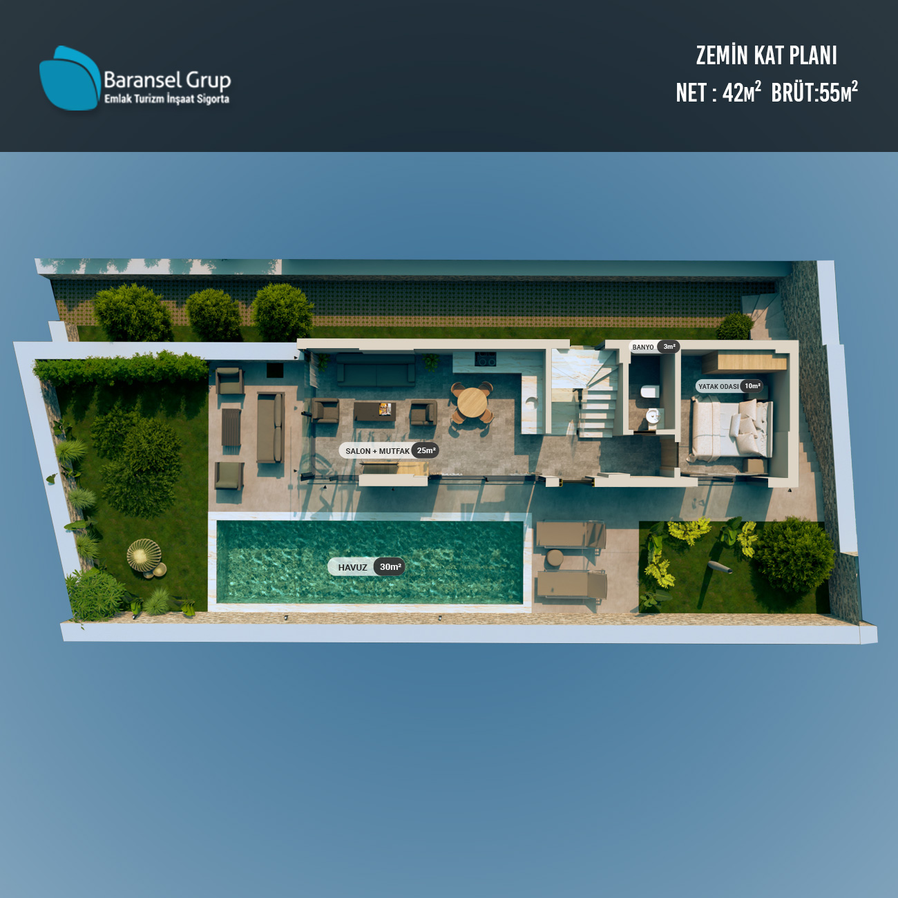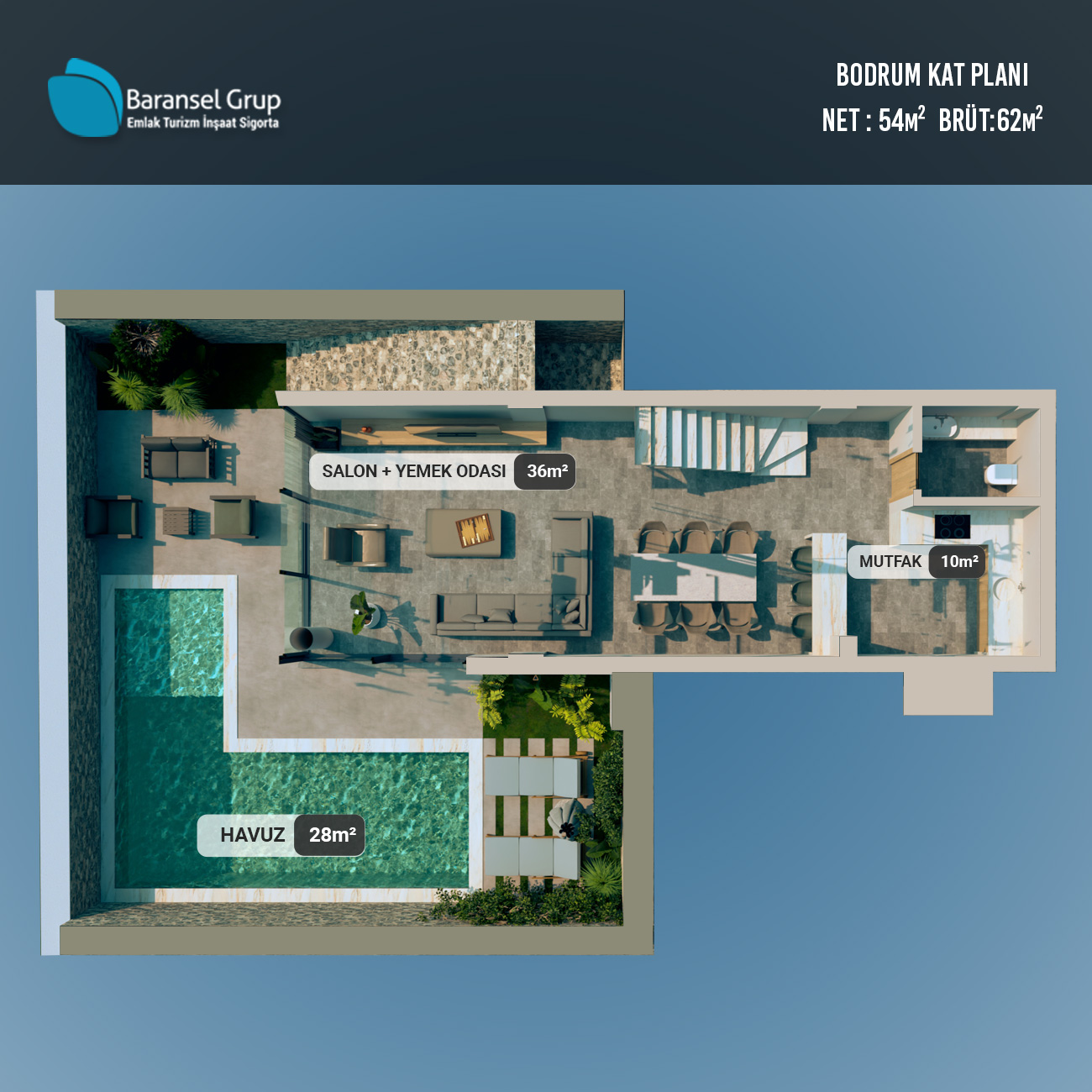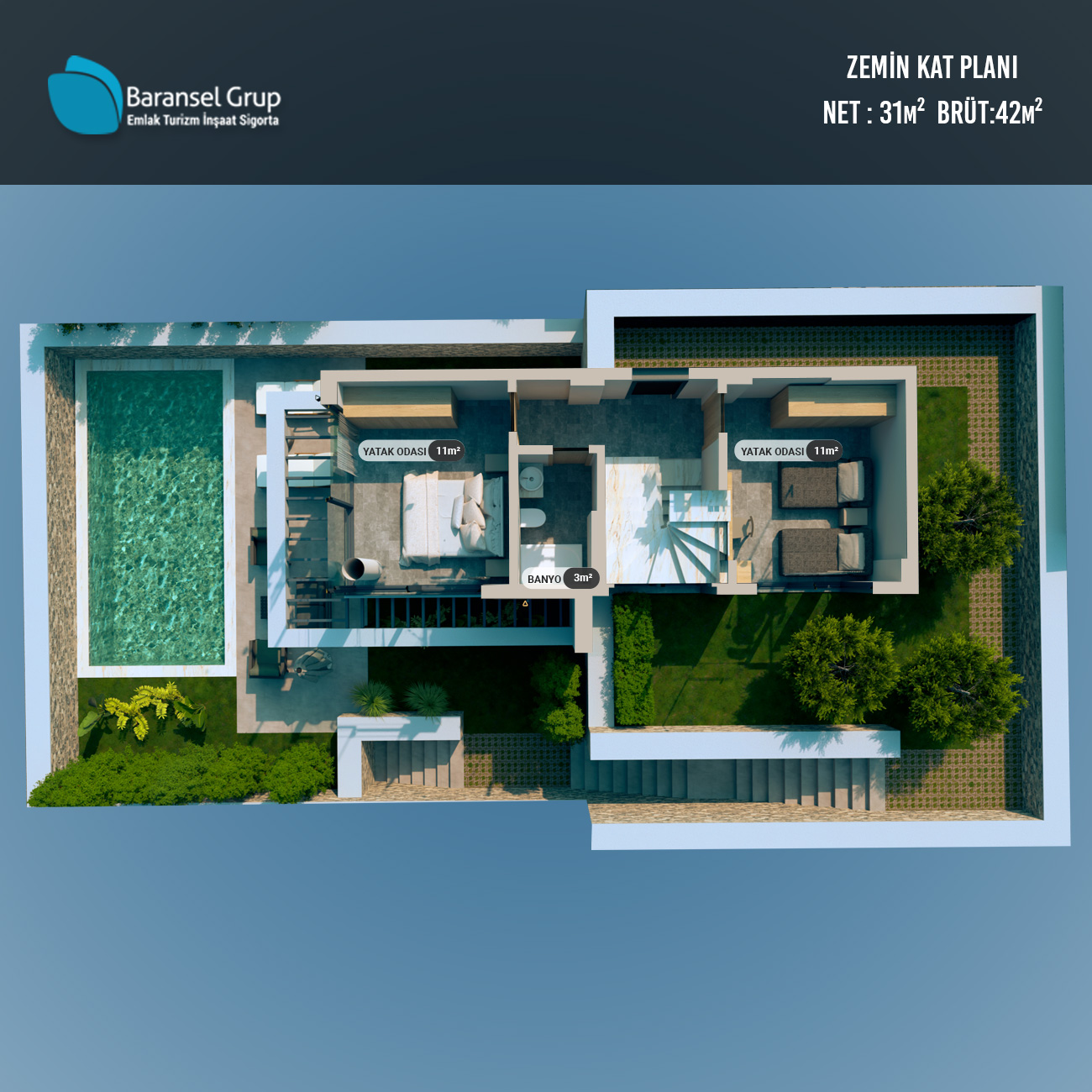 Doğanın huzuru ile modern mimarinin zarafetini buluşturan 16 özel villadan oluşan ayrıcalıklı yaşam projesi, sizlere benzersiz bir konfor deneyimi sunuyor. 4+1 VE 3+1 olarak tasarlanan villalarda 129- 155 m2 arası değişen büyüklüklerde, 2 katlı ve 3 katlı seçenekler bulunmakta olup, her yaşam stiline uygun geniş bir alternatif yelpazesi sizleri bekliyor. Projenin bazı villaları, manzarasıyla büyüleyen eşsiz deniz görüntüsüne sahiptir. Günün her anında değişen renkleriyle deniz, evinizin bir parçası hâline gelirken; geniş cam cepheler ve modern çizgiler manzaranın evin içine doğal bir şekilde akmasını sağlıyor. Her villa, özel bahçe alanı, geniş terasları ve havuzuyla size ve sevdiklerinize tamamen kişisel bir yaşam alanı sunar. Teraslardan havuza uzanan ferah mimari, doğa ile bütünleşen taş dokular ve modern özelliklerle donatılmış iç mekânlar, konut sahiplerine yılın her günü tatil konforunda bir yaşam sağlar.