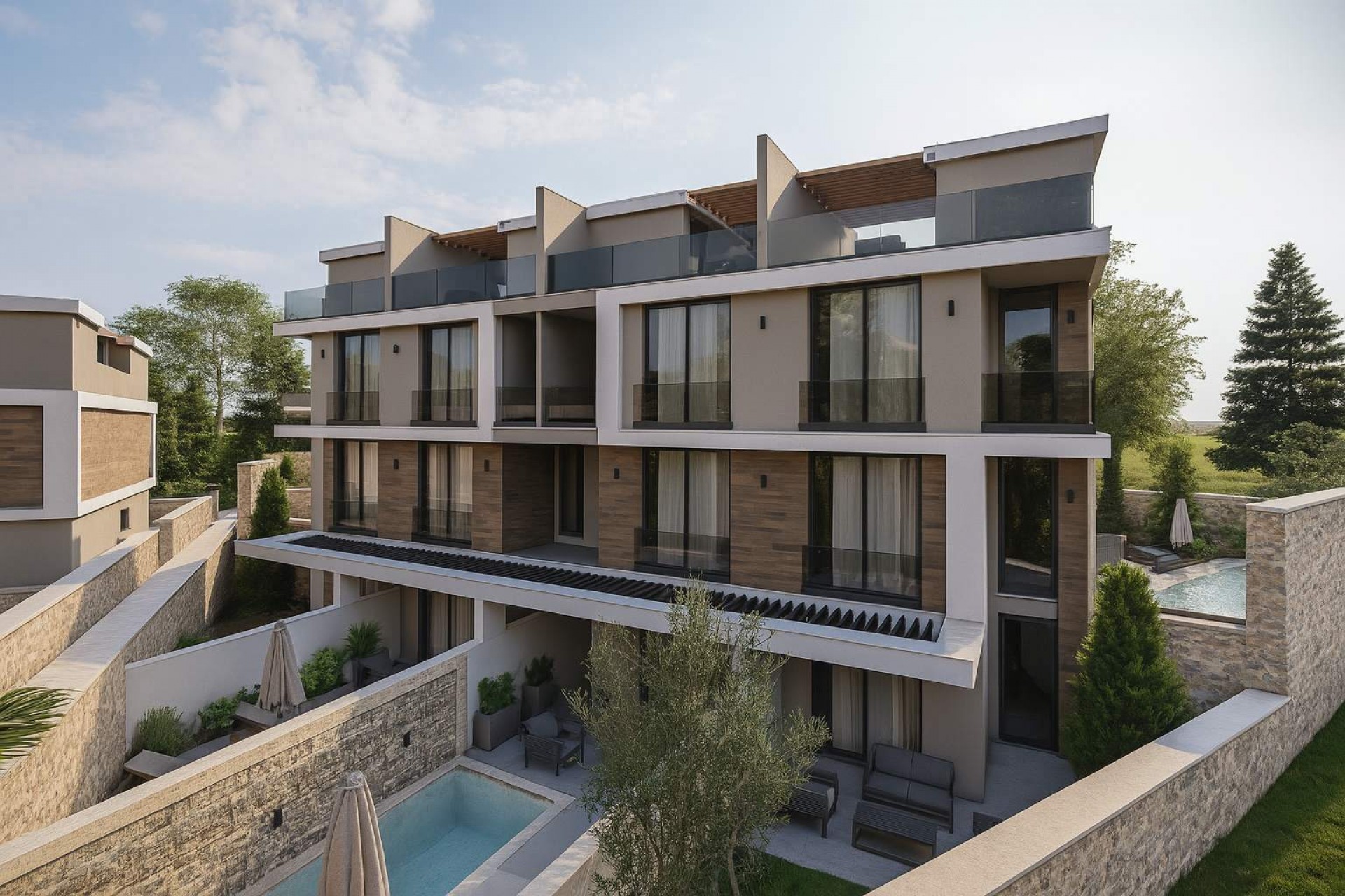 BaVadi Twin Vilları, Kalkan'ın girişinde bulunan doğa ve deniz manzaralı bir konumda inşa edilecektir. Proje kapsamında toplamda 12 adet villadan oluşmaktadır. Üç ayrı parselde 1737m² inşaat alanına sahip projemiz 2.5 + 1 ve 2+1 olarak tasarlanmıştır. Her biri müstkil girişli olarak tasarlanan villalarımızda size özel bahçe ve havuz mevcuttur. Villalarımız eşyasız olarak satışa sunulmaktadır eşyalı fiyatlarlar için lütfen iletişime geçiniz.