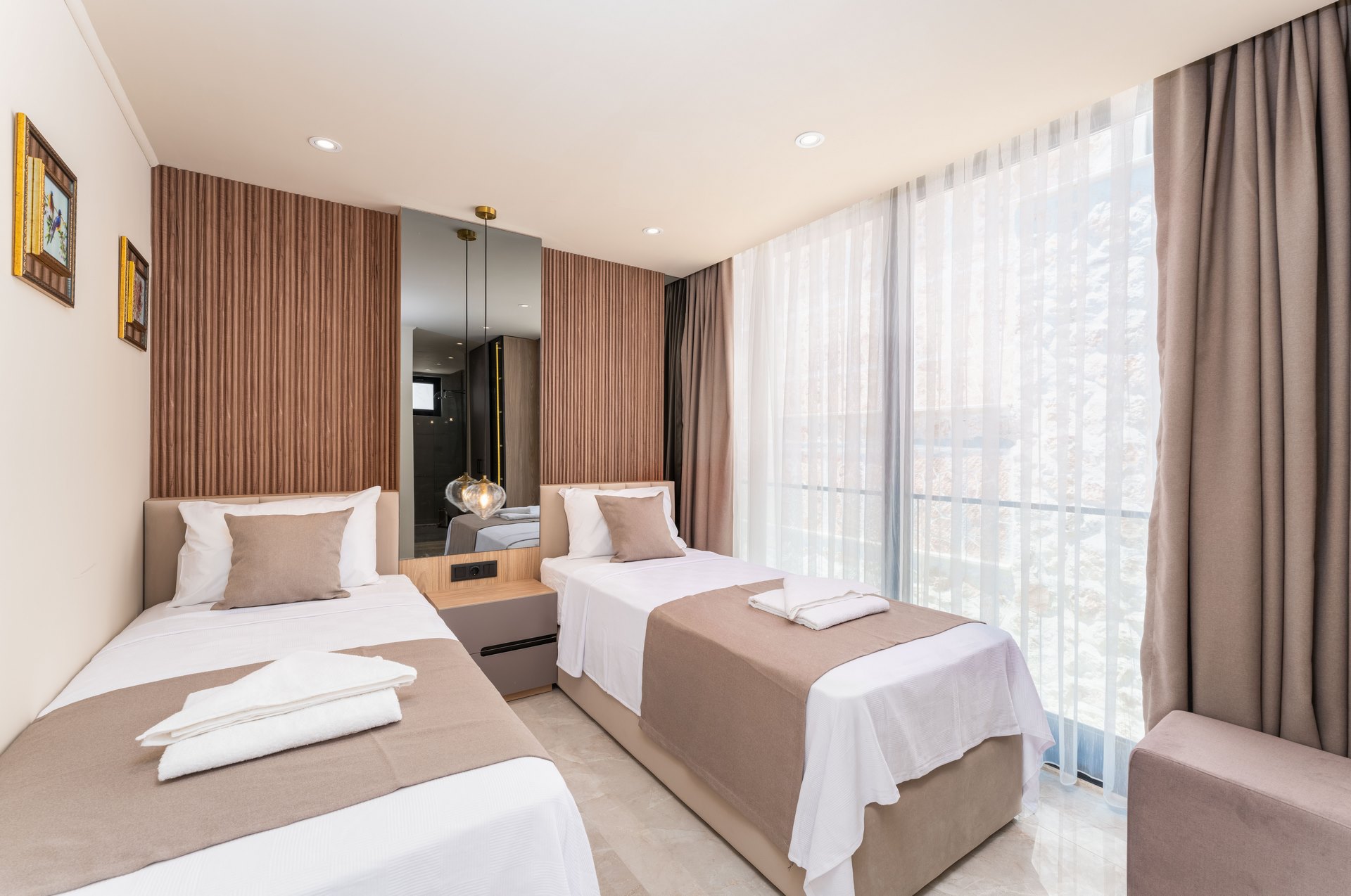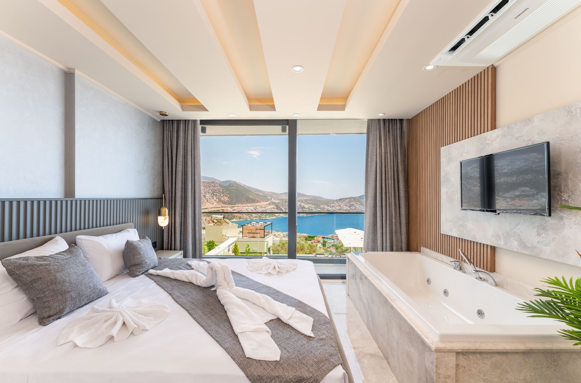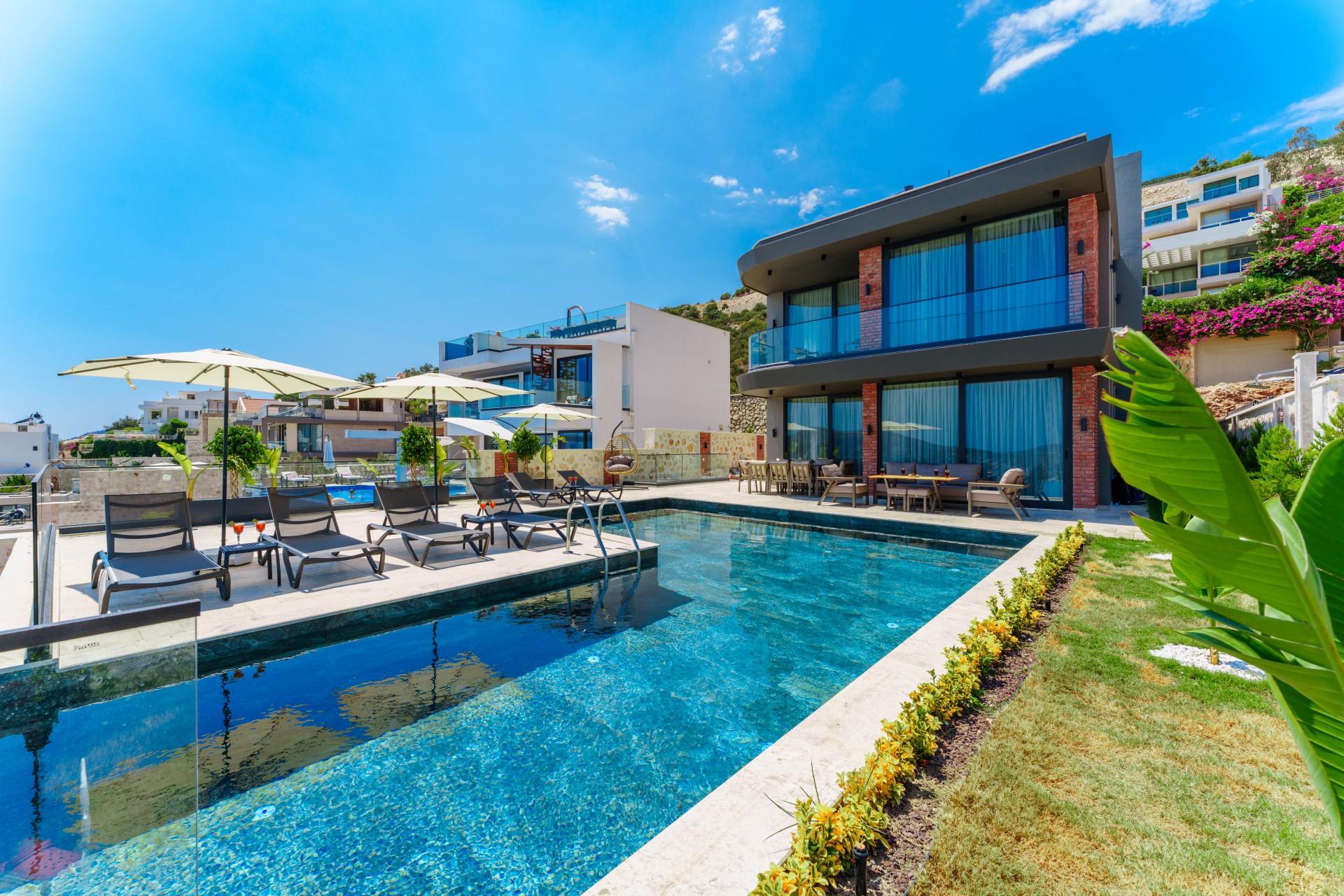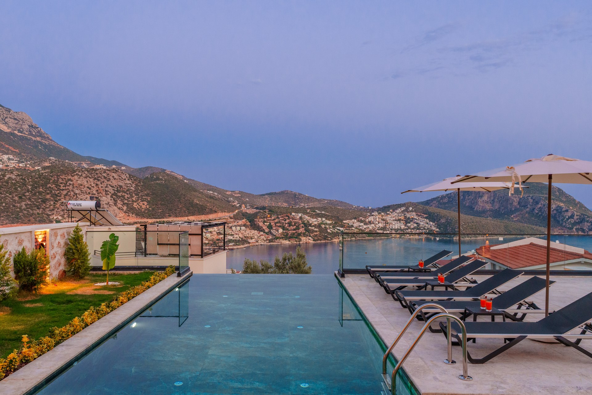 Projedeki tüm villalar birbirlerinin önünü kesmeden Kalkan'ın masmavi denizini kucaklamaktadır. Sonsuzluk havuzu, 340m² geniş bahçesi, otopark alanı bulunan villalarımızda yaz kış keyif sürebileceğiniz ısıtmalı kapalı havuzlarda bulunmaktadır.